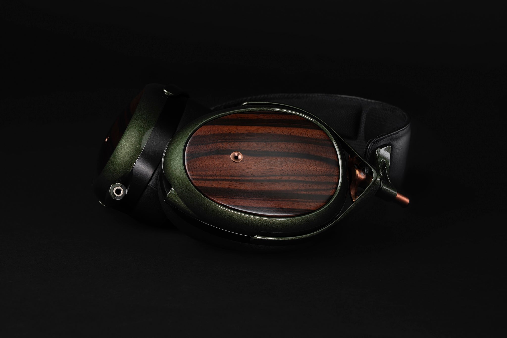 • Macassar Ebony Ear Cups: Dense, acoustically refined hardwood with a
