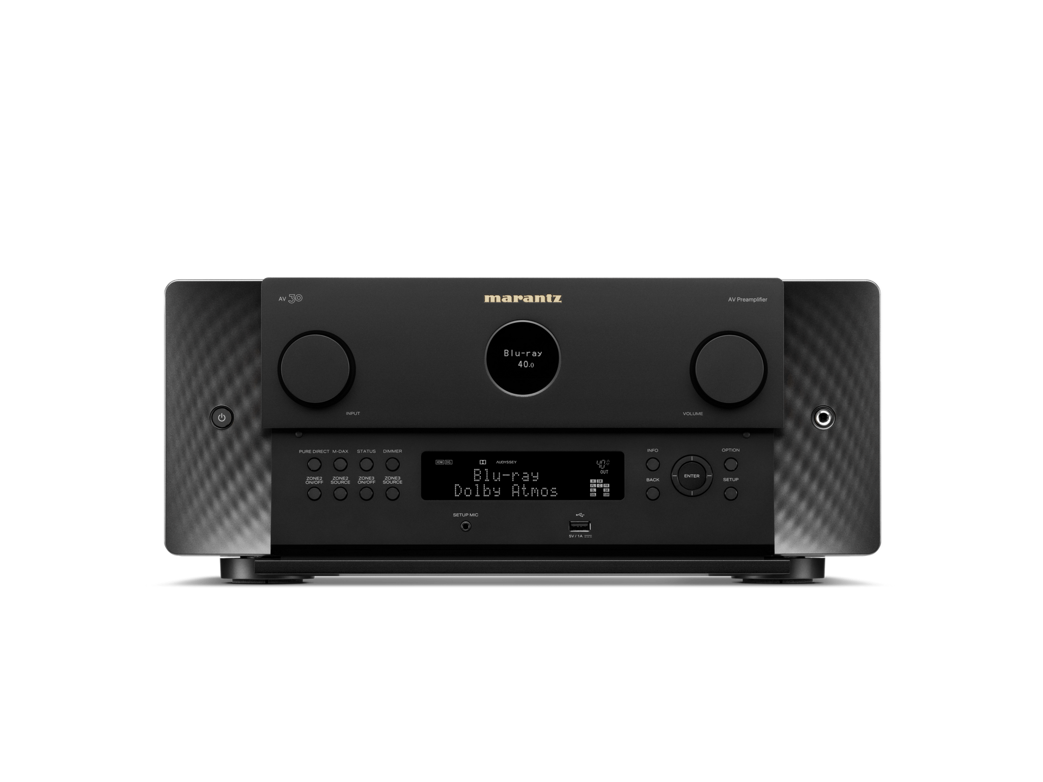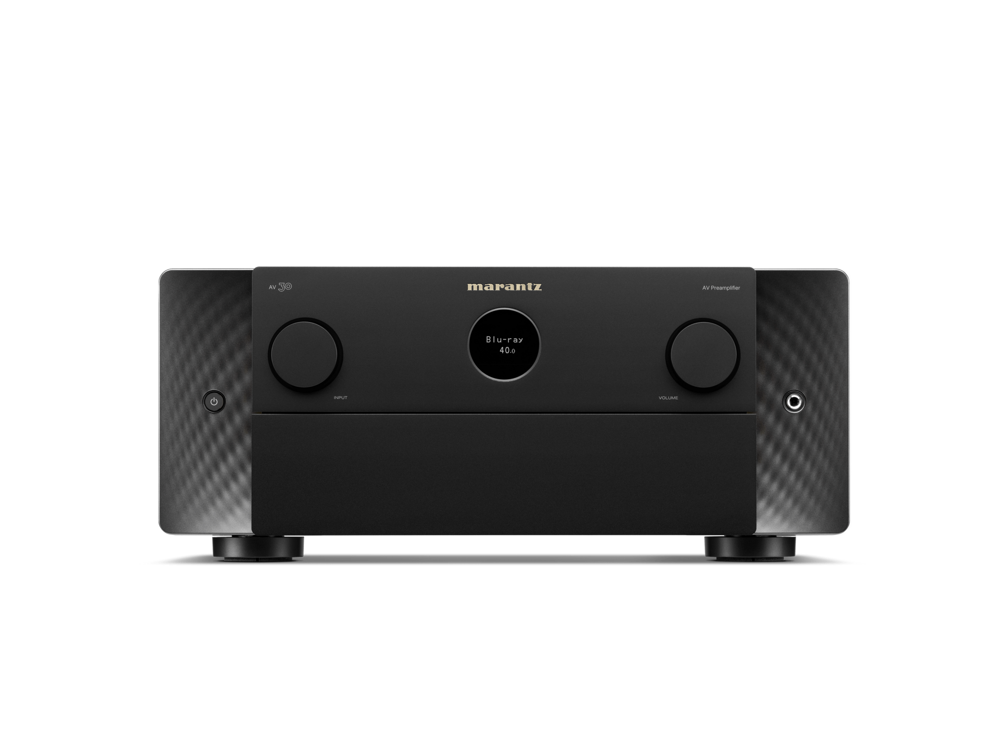 A modern expression of timeless design principles, AV 30 features the iconic Marantz porthole, premium materials, and subtle sidelights that illuminate the front panel.